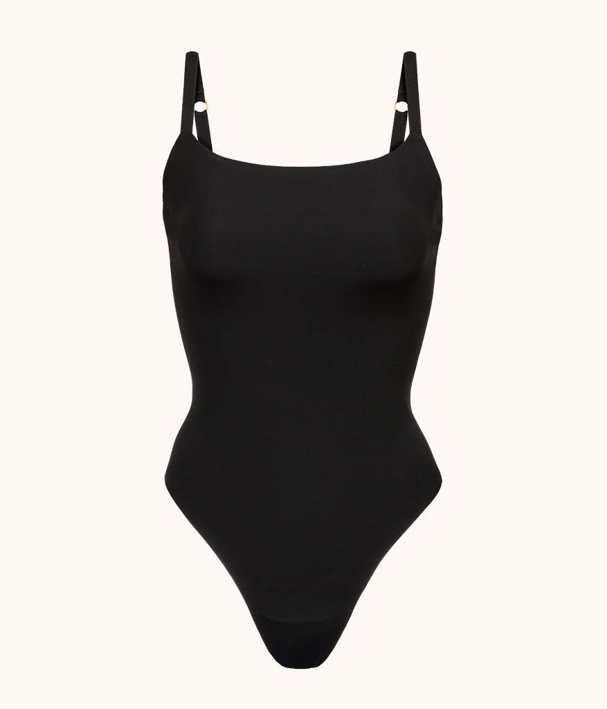 Say hello to barely there feels and step into confident, sexy style with our Sleek Bodysuit. This chic pull-on silhouette features a modern square neckline, adjustable back straps, a double-layer front for maximum support and a thong back for wearing with any and everything in your closet. All in our second skin nylon for a barely there feel.